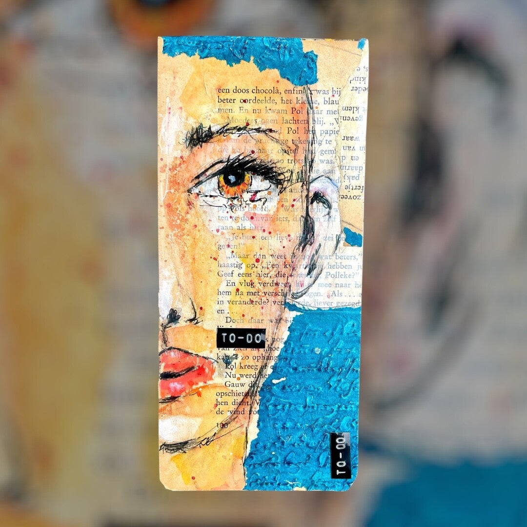 To-Do Dual Faces – To-Do Boekje met Collage en Acrylinkt (20 x 9 cm)