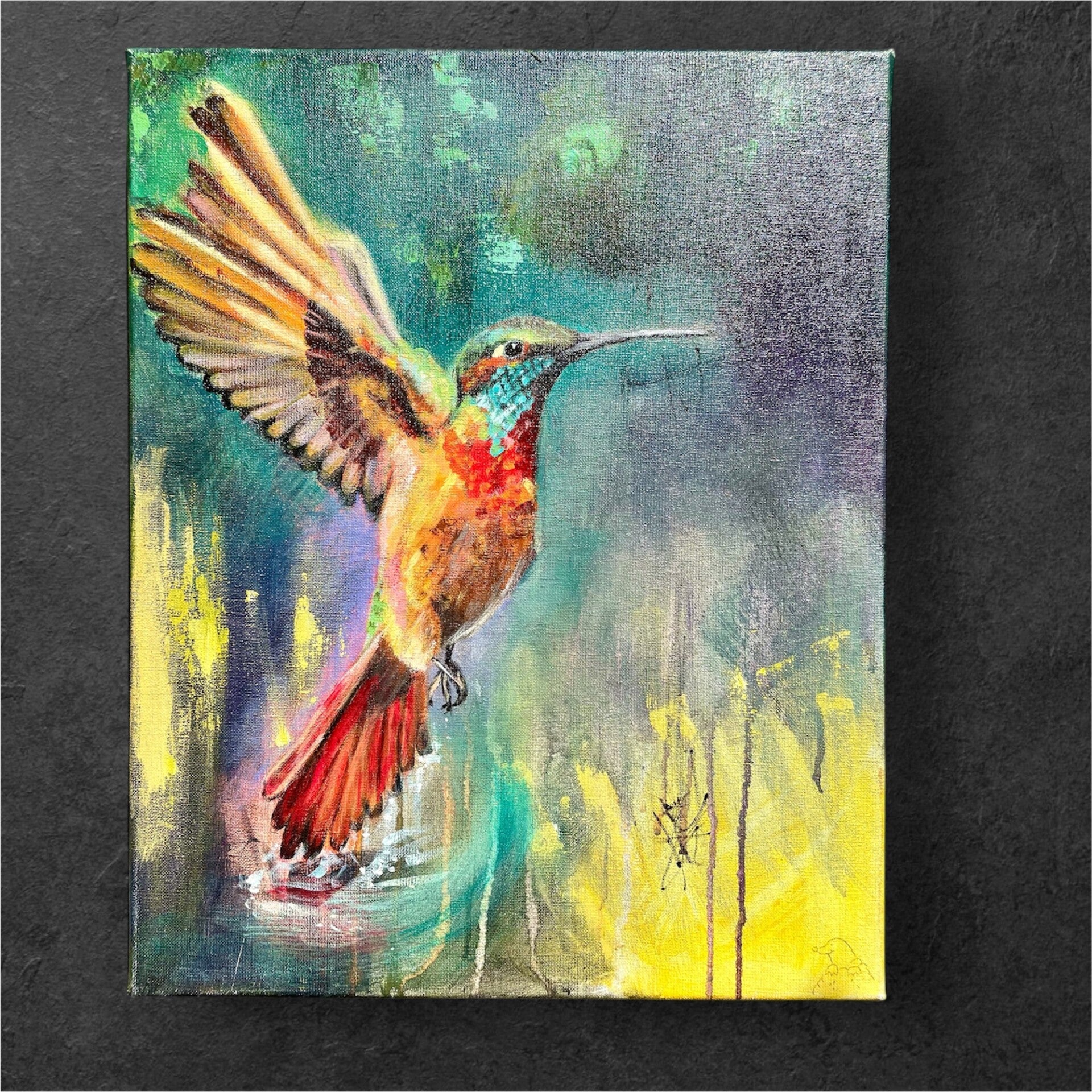 Kolibrie van Vrijheid – Acryl op Linnen Canvas (30×40 cm)
